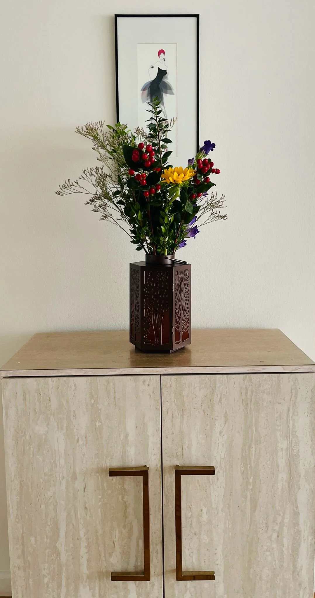 By July, I was running out of ideas for creating novel arrangements in unique vases. I looked around and had a brilliant idea: I would use an ombre glass hexagonal tealight candle lantern, a gift from my nephew, as a vase. I thought the bold geometrical pattern was an excellent element for recreating the Art Deco style of American floral design. In hindsight, the lantern-turned-vase was charming, maybe even contemporary, but not truly modern. I created a fountain-shaped arrangement with it. I chose white roses, red hypericum berries, and bluebells, among other flowers and stems, to signify red, white, and blue for the Fourth of July. The sunny disposition of the sunflowers stole the show, though. I wanted to write something about the significance of July 4th for me, paired with that floral arrangement, but I simply couldn't, and my thoughts dissipated. This is when I decided to visit the famed NYC Flower District, hoping it would give me more material to write about.